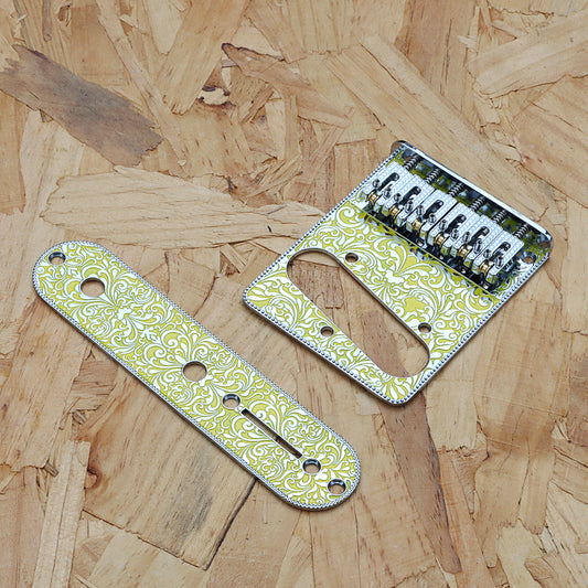 6 String Roller Saddle Bridge and Control Plate with Carving Decorative Pattern for TL Electric Guitar Parts