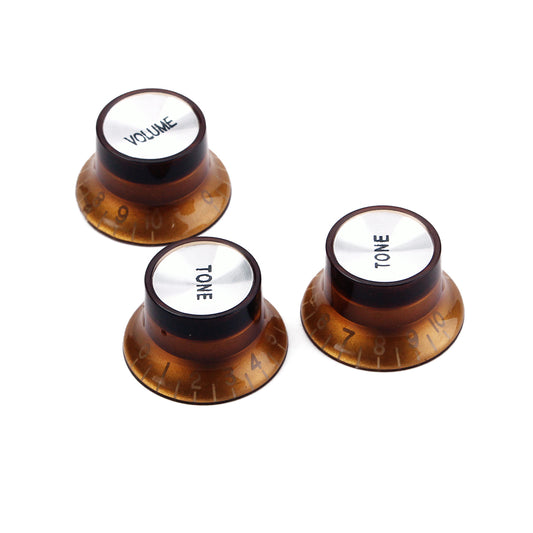 1 Set of 3pcs Brown Silver Reflector Volume Tone Electric Guitar Knobs