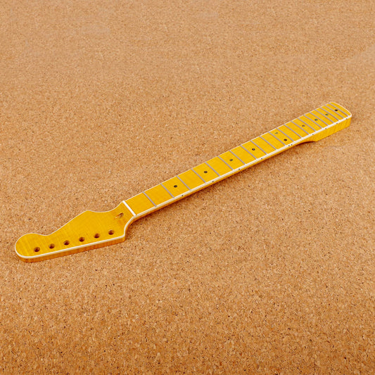 21 Fret Tiger Flame Maple Guitar Neck Replacement Guitar Neck for ST/TL Electric Guitar Abalone Dots Natural Yellow Glossy