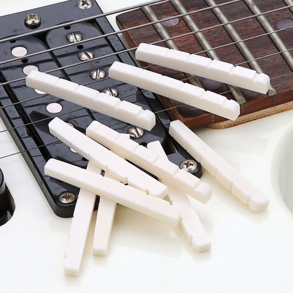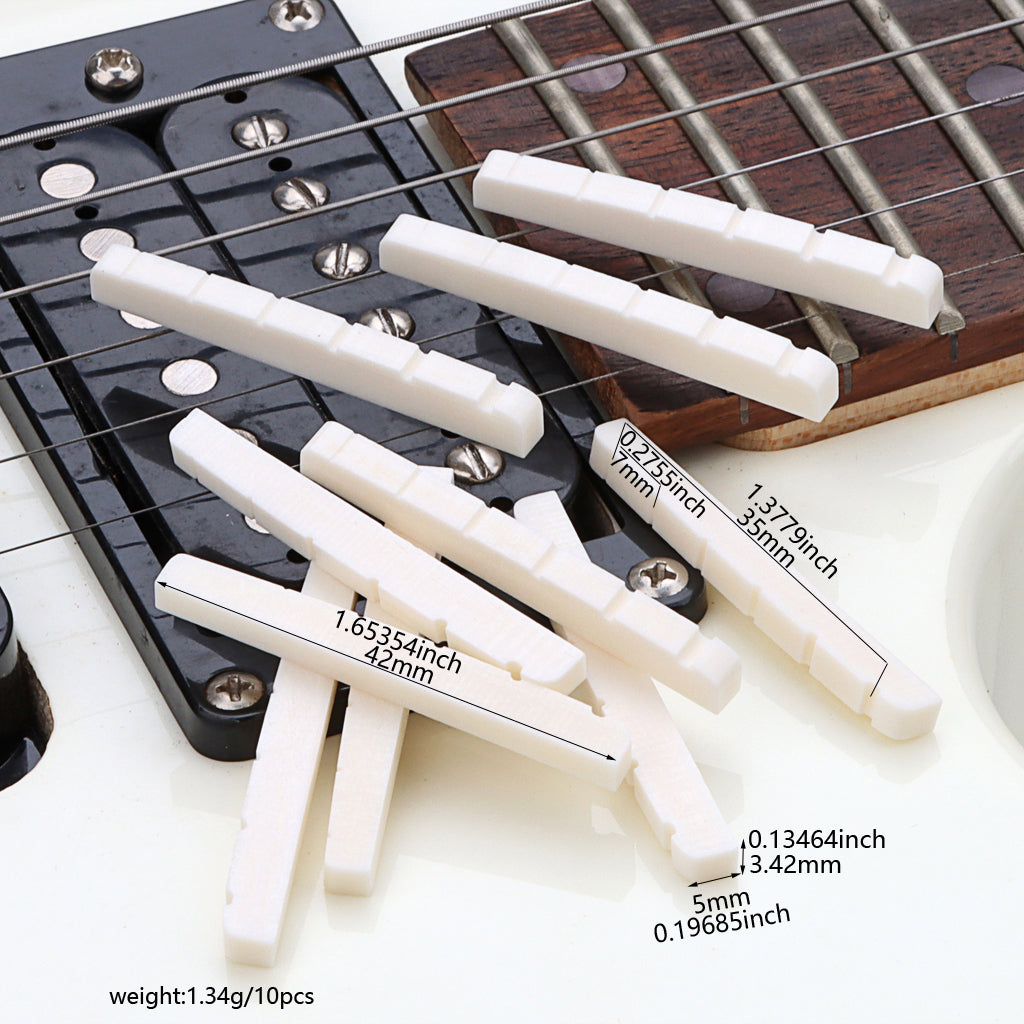 10Pcs 42mm Guitar Nut Slotted Bone Nut for 6 String Strat Tele Electric Guitar,Flat Bottom