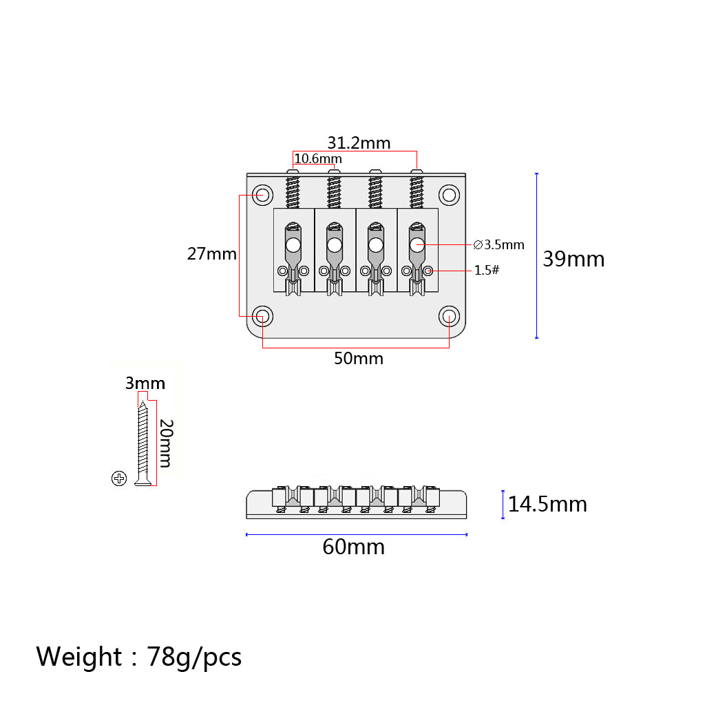 4 String Bridge For Cigar Box Guitar Or Electric Ukulele Chrome/Black/Gold