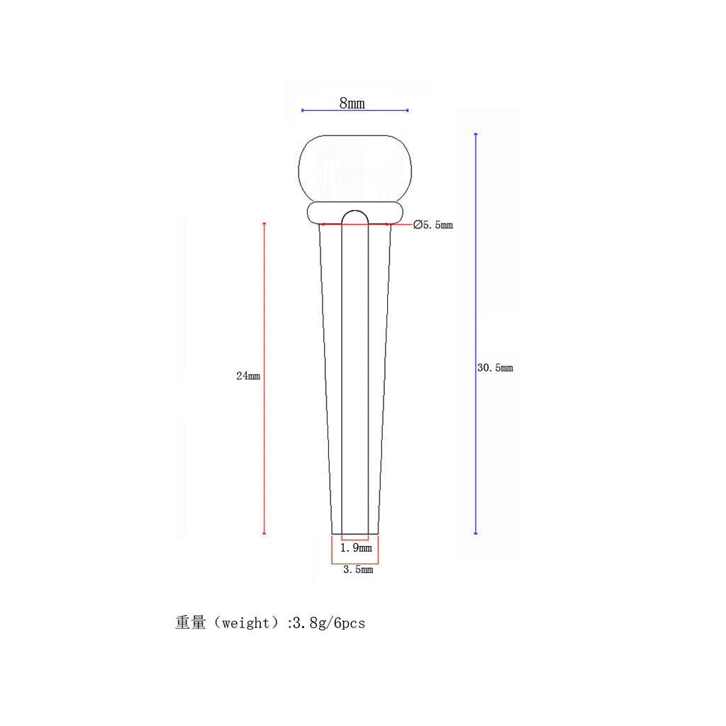 6x red wood Bridge Pin With 4mm Golden Classical Style Dot Acoustic Guitar