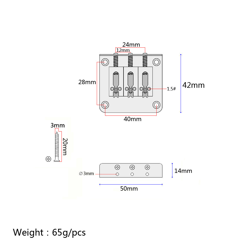 Cigar Box Guitar Parts 3 String Chrome/Black/Gold Hard Tail Adjustable Bridge