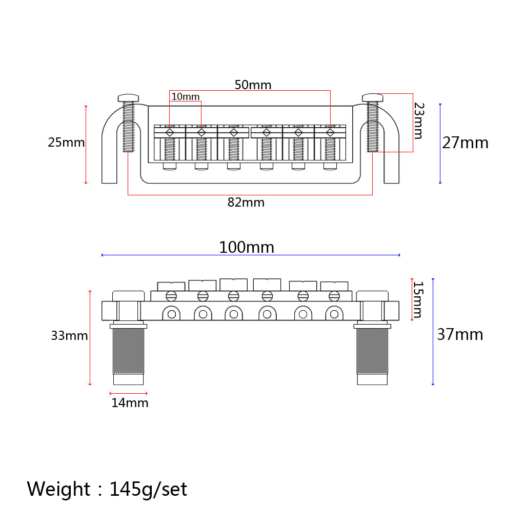 Guitar Part WRAP AROUND - 6 Adjustable Saddle Bridge Tailpiece - LP Jr - GOLD