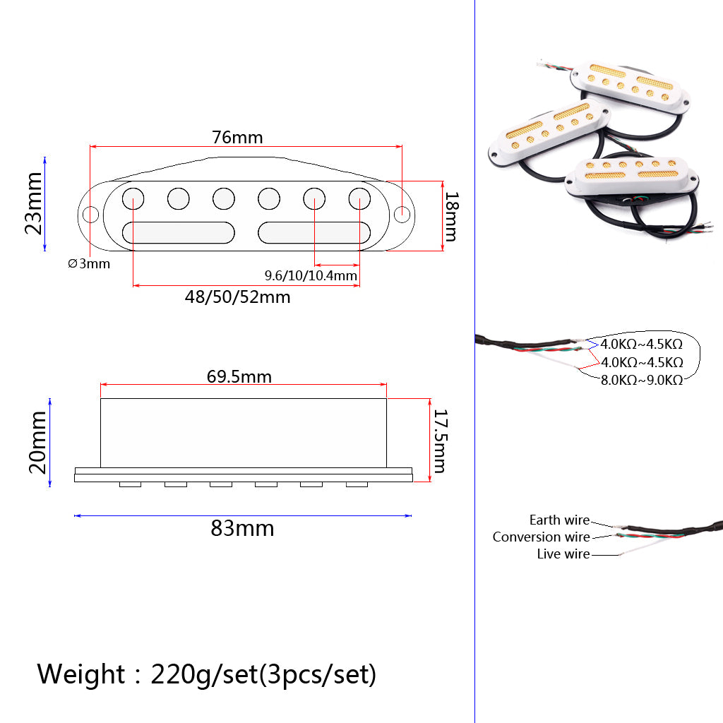 SSS Standard Single Coil Pickup Set ,White/Black/CREAM/Red/green